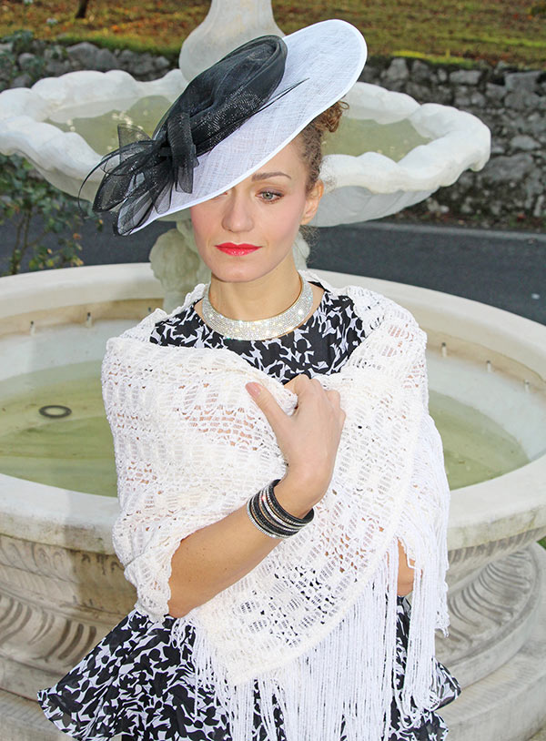 Ecco per una serata molto importante ho deciso di indossare un tubino con un volant leggermente voluminoso e uno scialle che ha all’incirca 50 anni.